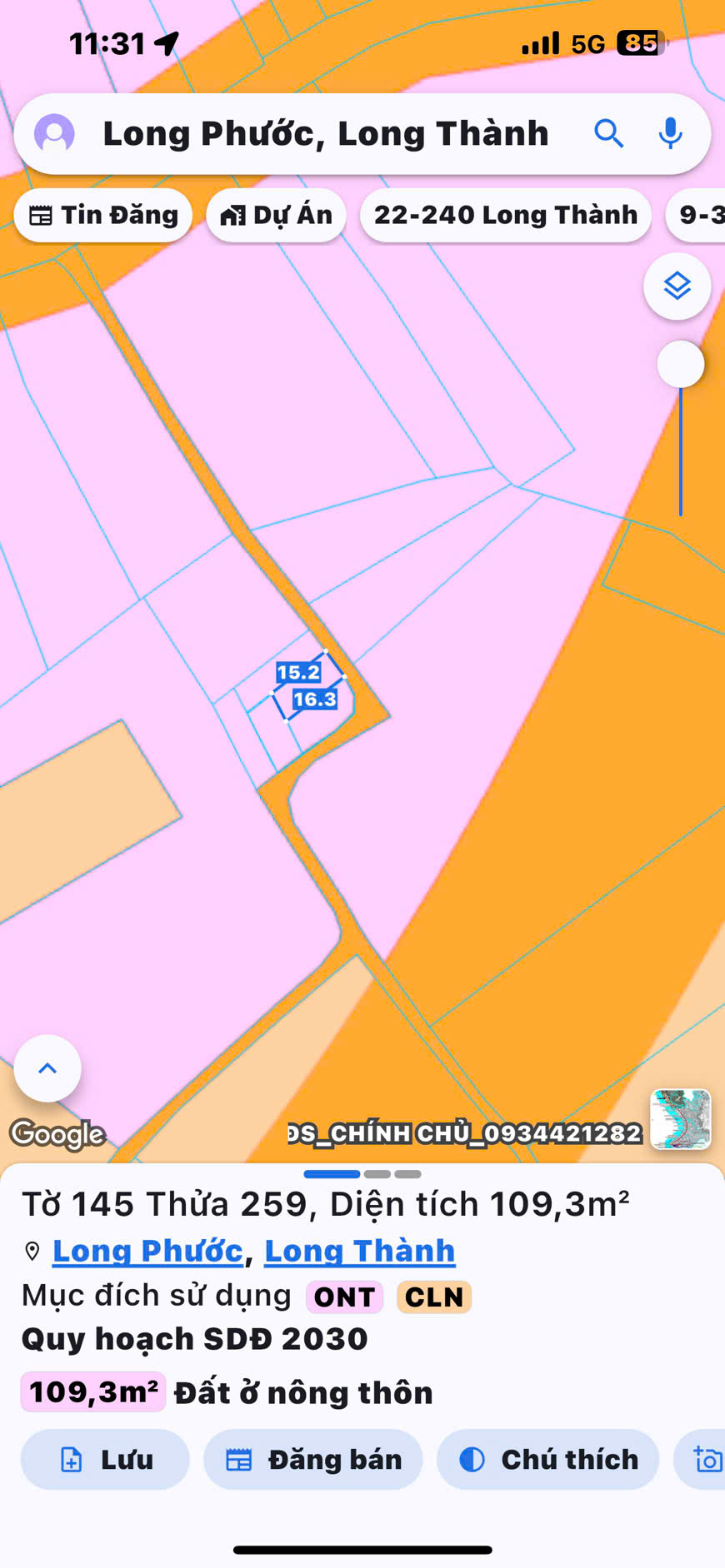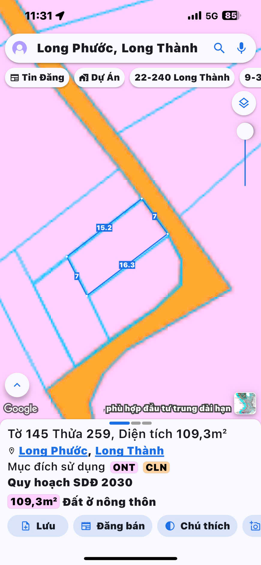 BÁN ĐẤT THỔ CƯ GIÁ TỐT – THỬA 259, XÃ LONG PHƯỚC, ĐỒNG NAI – GẦN ĐƯỜNG 770B – CHỈ 1 TỶ